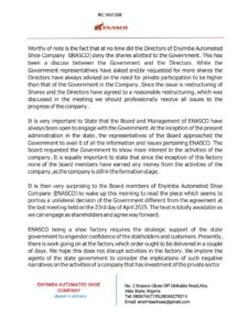 “While as a Board our representatives at the meeting are yet to fully brief the Board members in order to take a decision in line with the resolution reached at the meeting, we assure the Government and the general public that the vision of making ENASCO a premier Shoe manufacturing company will be realized”