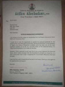 BREAKING: Former Vice President Atiku Abubakar resigns from PDP. Atiku’s resignation comes weeks after the adoption of ADC as the coalition party for the 2027 election, which he’ll be contesting.