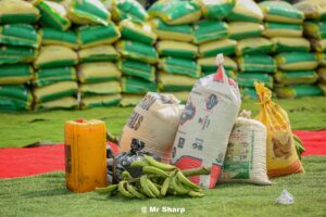 Distribution of 80 bags of rice by the Wife of the Governor and cutting of Unity Cake