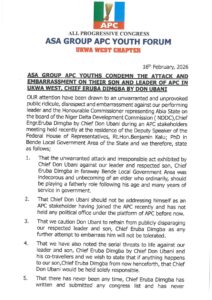 ASA GROUP APC YOUTHS CONDEMN THE ATTACK AND EMBARRASSMENT ON THEIR SON AND LEADER OF APC IN UKWA WEST,CHIEF ERUBA DIMGBA BY DON UBANI