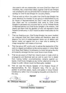 6.That we wish to inform the public that Chief Eruba Dimgba has never declared his intention to any group or stakeholders to run for House of Representatives but that it was this same Chief Don Ubani and his co-travellers that came to Chief Eruba Dimgba to persuade and convince him to run for Federal House of Representatives but Chief Eruba Dimgba in his wisdom, had clearly told them that the decision of who will represent Ukwa Federal Constituency in 2027 would be determined solely by the party..
